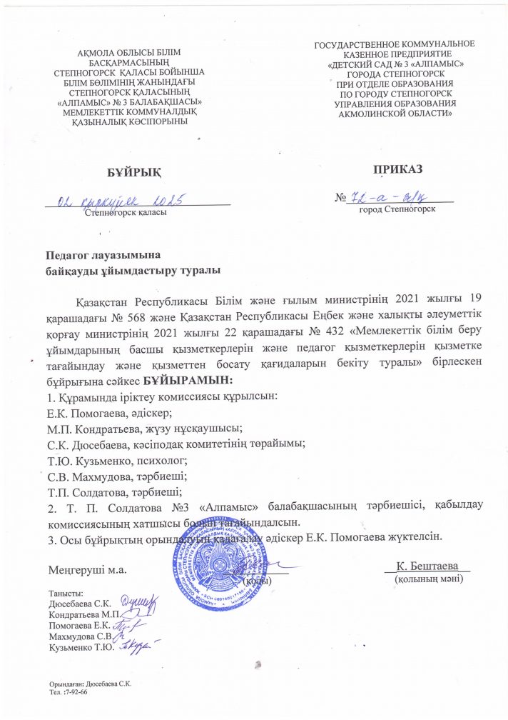 Государственное коммунальное казенное предприятие «Детский сад №3 «Алпамыс»  города Степногорск при отделе образования  по городу Степногорск управления образования Акмолинской области"